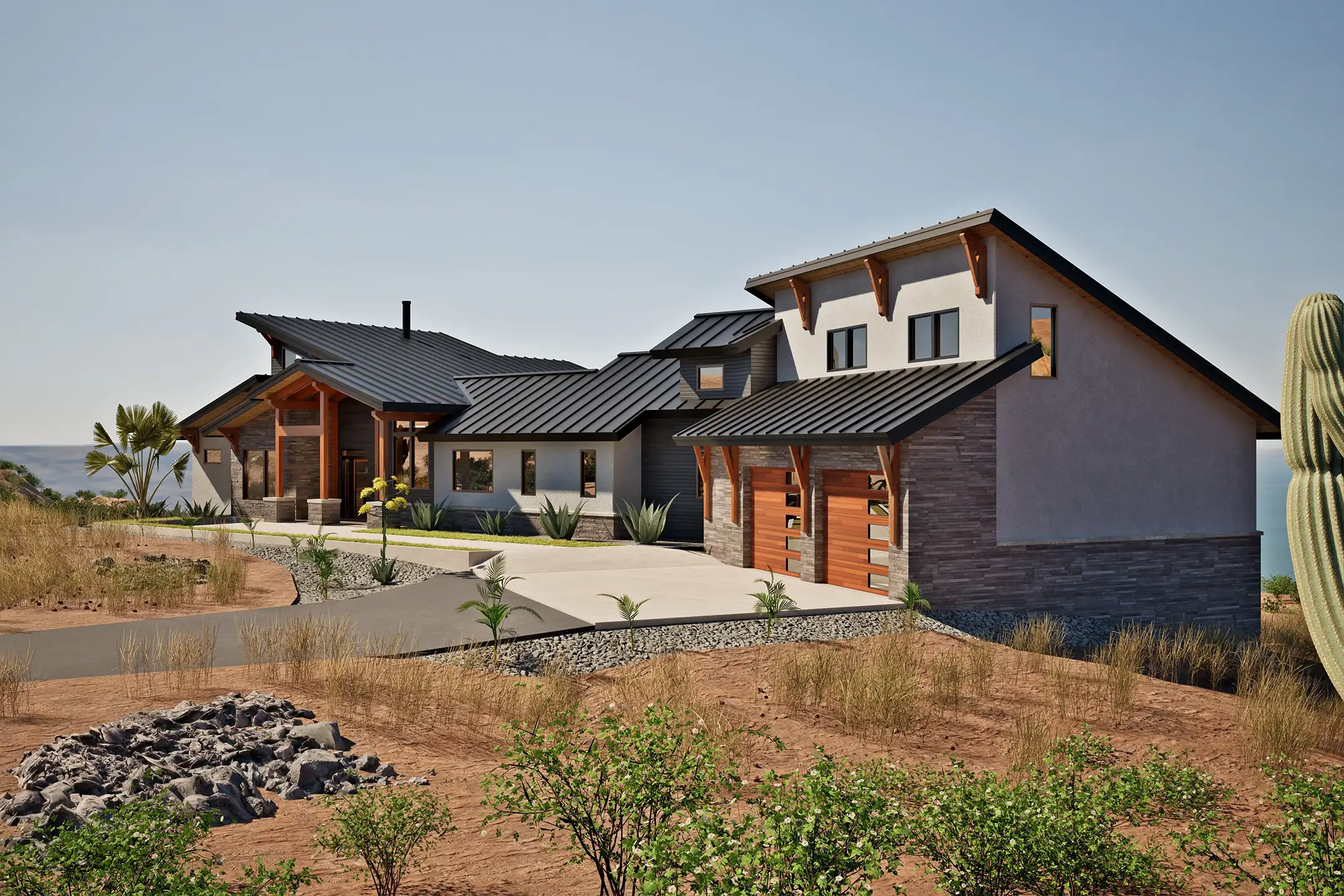 Mid-Century Modern homes reflect a revival of the iconic design movement from the 1950s and 60s, known for its clean lines, simple forms, and strong connection to the outdoors. These homes often feature low pitched or asymmetrical roofs, open layouts, and large windows that bring in natural light and views. Interiors are thoughtfully styled with warm wood finishes, bold accent patterns, and classic furniture pieces that feel both timeless and fresh. With occasional touches of Eastern influence, this series embraces a relaxed, modern lifestyle rooted in simplicity, functionality, and a love of natural surroundings.