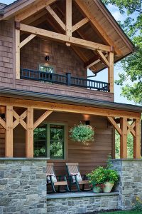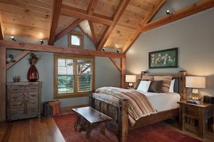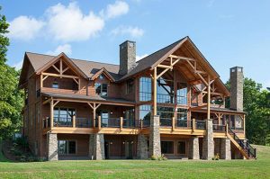 6770 square foot Great Camp Douglas Fir Timber Frame Home with 5 bedrooms and 5.5 bathrooms. Download the Great Camp floor plan here.