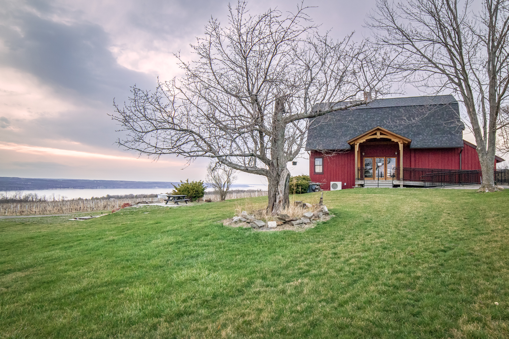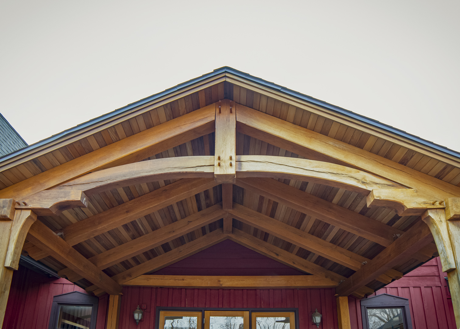 Located in Lodi, NY, Caywood Vineyards wanted a set of traditional timber frame covered porches that match the restored barn that houses the winery and tasting room. The Woodhouse team worked with the owners to design and supply a timber frame that matched the existing aesthetic perfectly, most customers visiting the winery today would probably be surprised to find out that the covered entrances were not a part of the original structure.