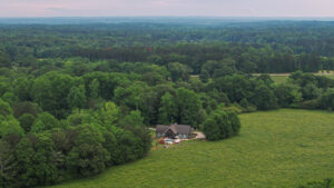 Perched on six acres of Georgia woodlands in Carrollton, this 2,200-square-foot timber frame home embodies the artistry of custom design. With three bedrooms and three and a half bathrooms, it seamlessly integrates craftsmanship with nature. The open interior, bathed in natural light, features exposed timber beams, creating a warm and inviting atmosphere. A testament to architectural innovation, this residence harmoniously connects with its pastoral surroundings, offering a unique retreat in the heart of Georgia.