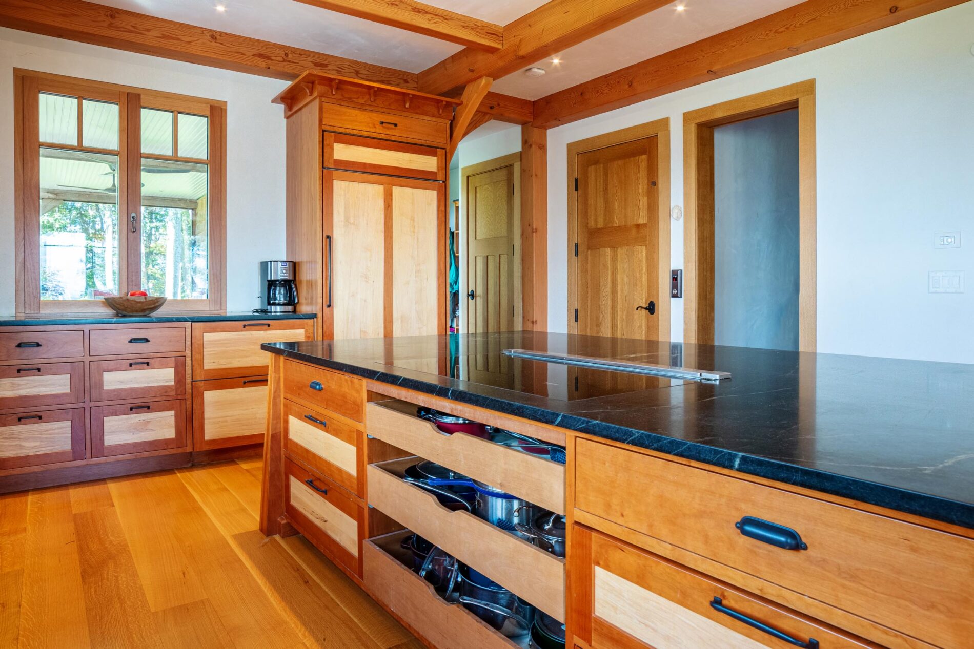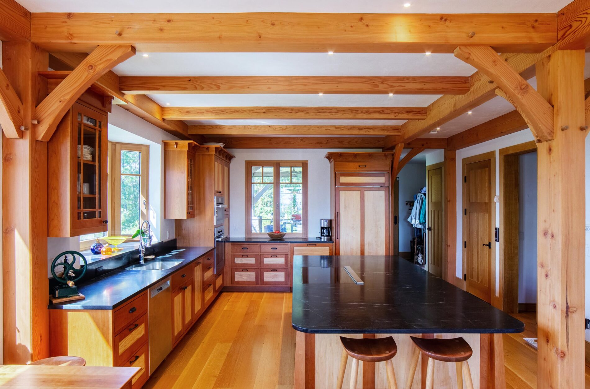 This custom timber frame home is a testament to the successful collaborative effort between Woodhouse’s design team and the client. To find out how we can bring your exact timber frame vision to life contact us any time!
