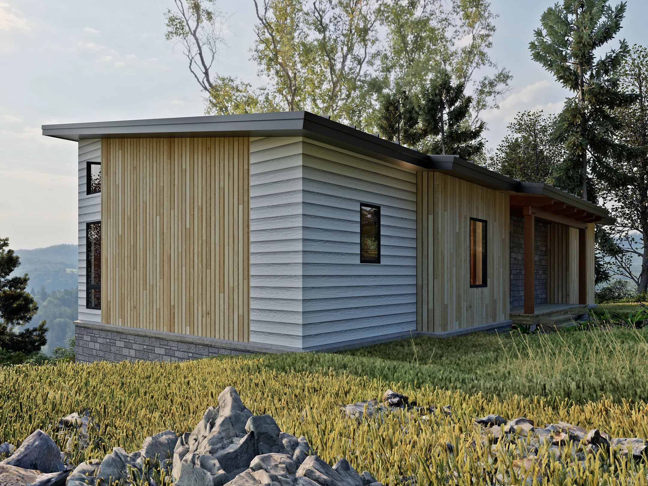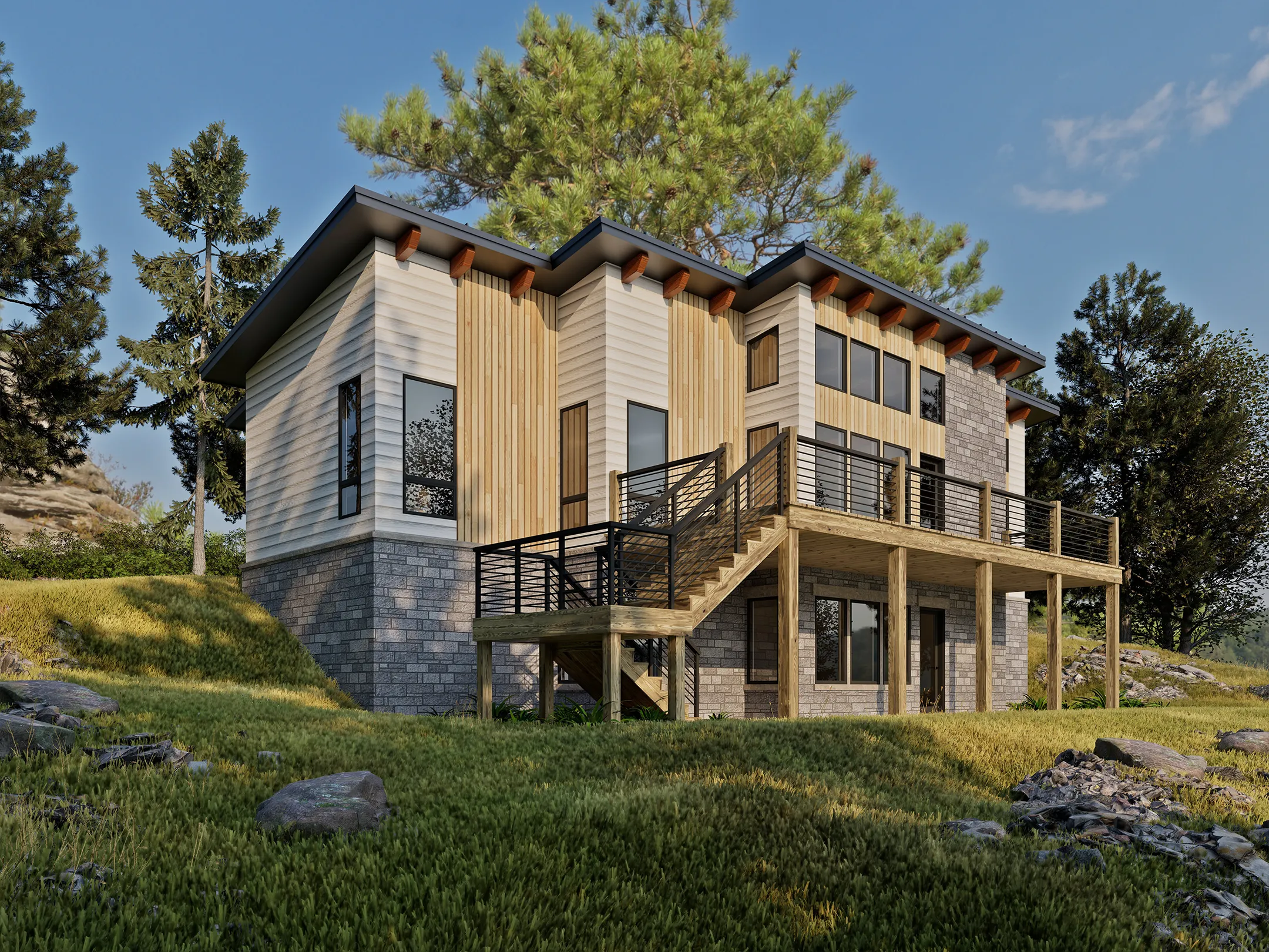 The CreekRock V2 is a 3 bedroom, 2 bathroom mountain modern timber frame home plan designed for homeowners seeking efficient square footage without sacrificing architectural character. At 1,405 square feet, this thoughtfully crafted timber frame house plan maintains the proven layout of CreekRock V1 while introducing refined elevations and a full timber frame design for improved functionality and curb appeal.