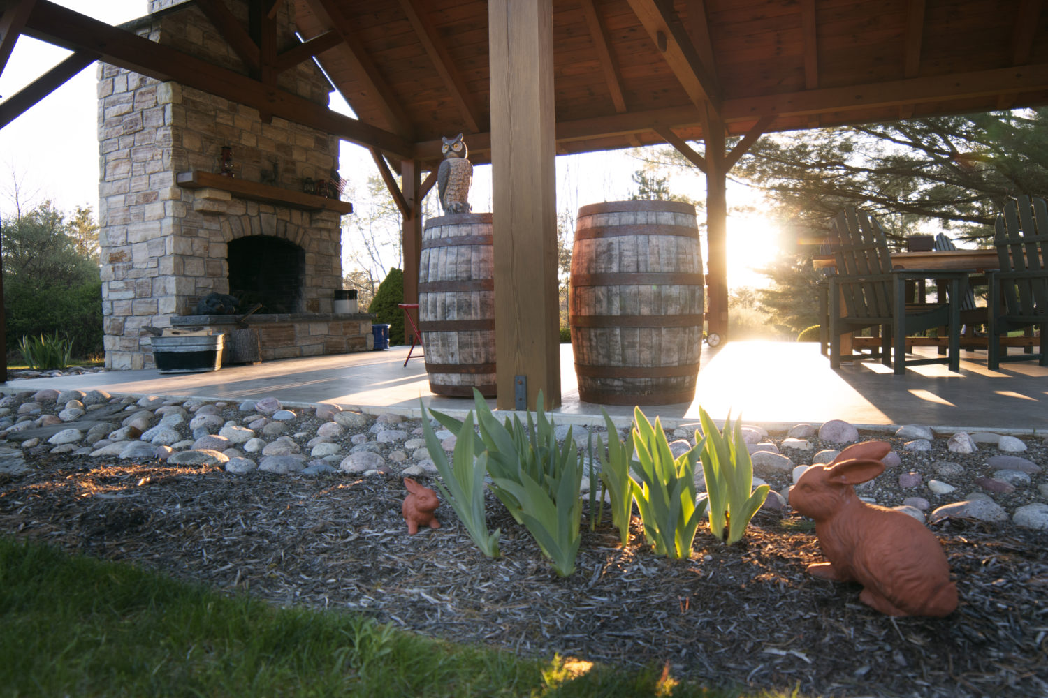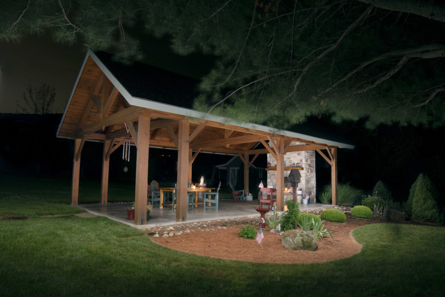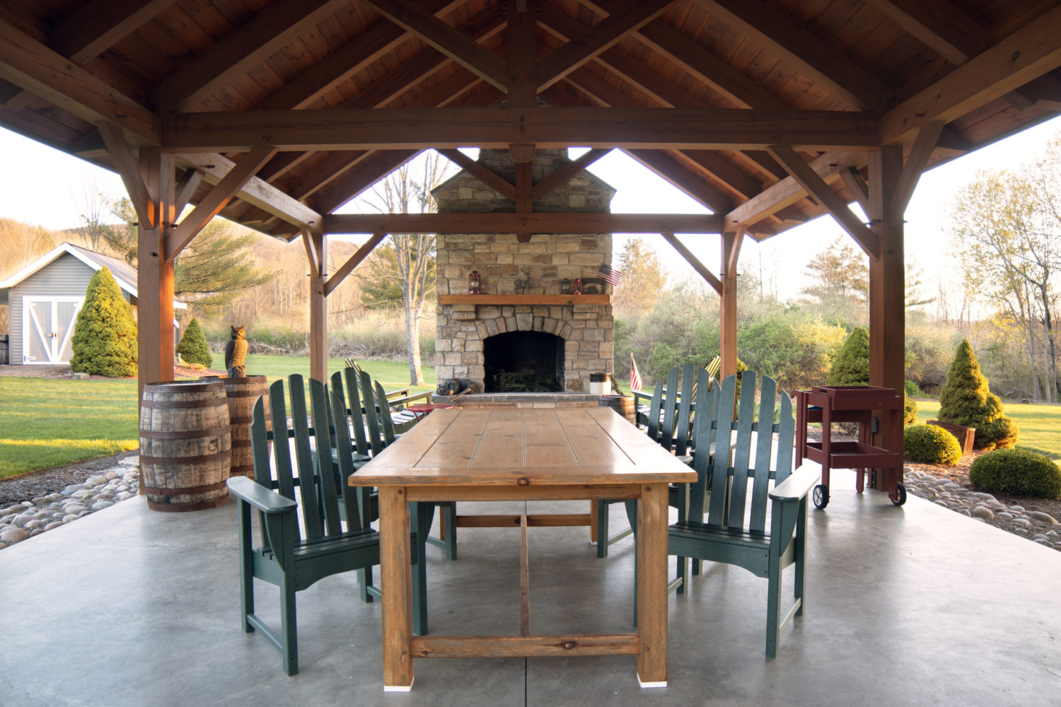 This beautiful king post truss, Southern yellow pine, timber frame pavilion is the true meaning of outdoor living! You can explore our Outdoor Series if you are looking for your own timber frame garden sanctuary, or call us for more information @800-227-4311